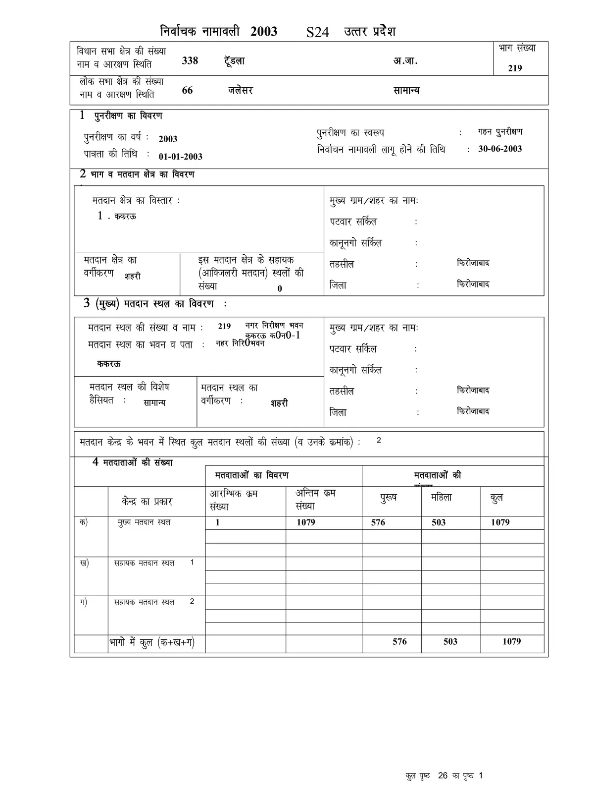 Voter List 2003 Uttar Pradesh Muzaffarnagar - Summary