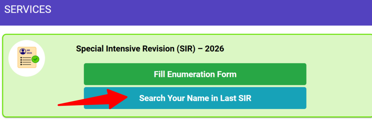 Step 2: At the homepage of the website you have to click on “Search Your Name in Last SIR” as the screenshot shown below.