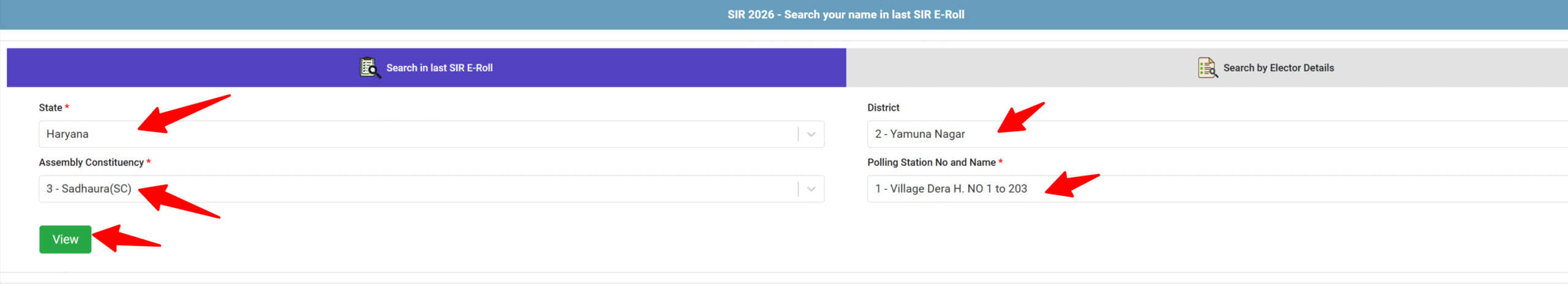 Step 3: On the next page you have to select the “State”,”District”,”Assembly Constituency” and click on view button as the screenshot shown below.