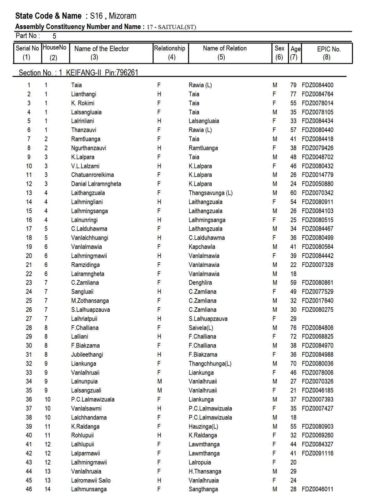 Step 4: Then your Voter List 2005 Mizoram will be open as the screenshot shown below.