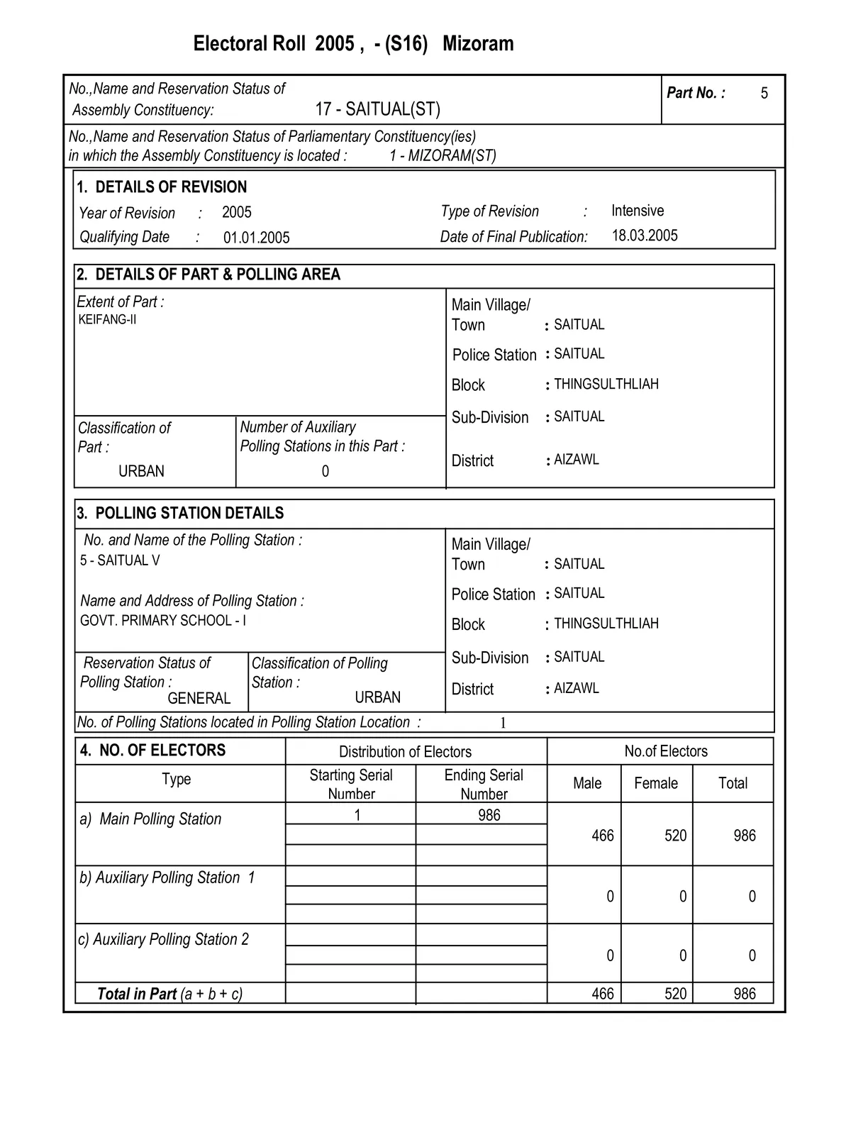 Step 4: Then your Voter List 2005 Mizoram will be open as the screenshot shown below.